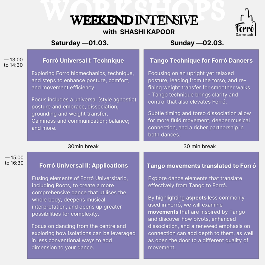 Aside from having studied the Roots and Universitario styles of Forró, Shashi is very passionate about Tango and has a background in martial arts, drawing upon these influences to shape his teaching methods.